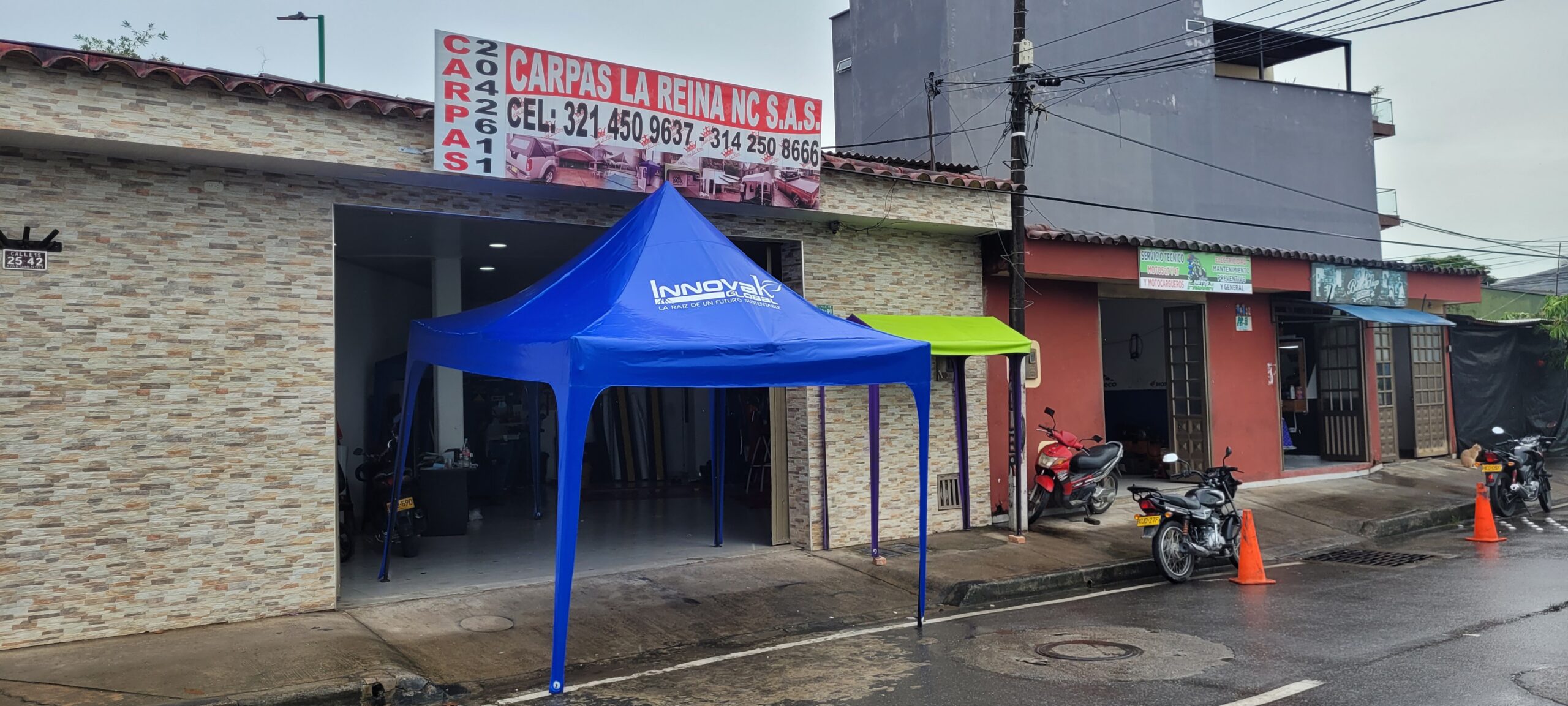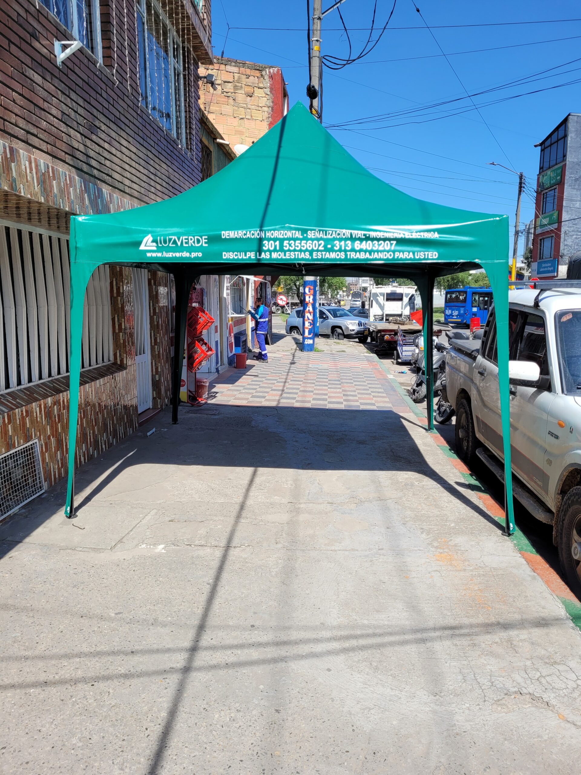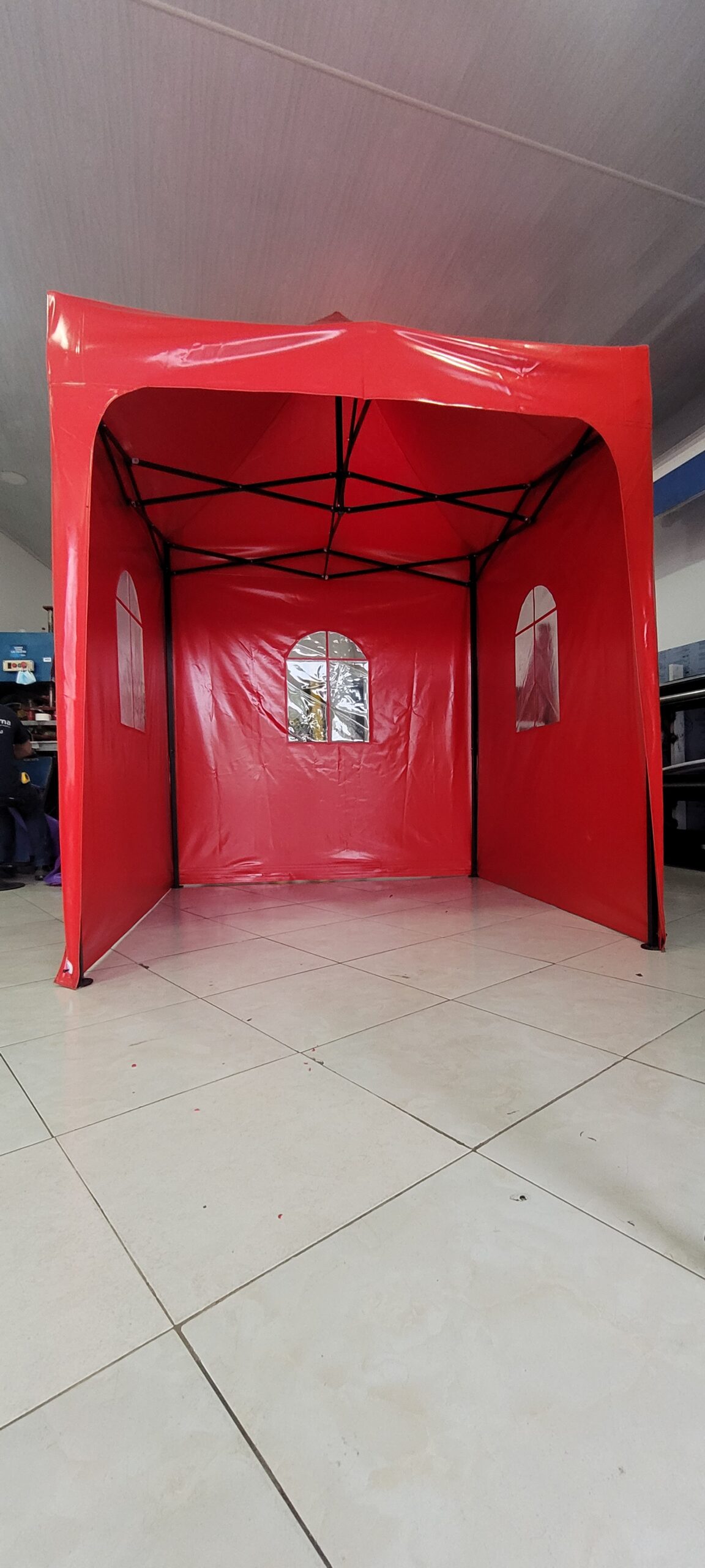 Estas carpas son de fácil transporte, muy practicas para su armado, con bolso para su almacenaje, fabricadas en lonas nacionales, en estructura metálica pintada al horno o electroestática.