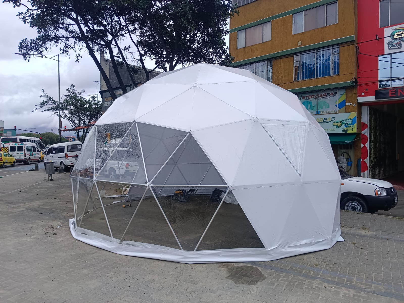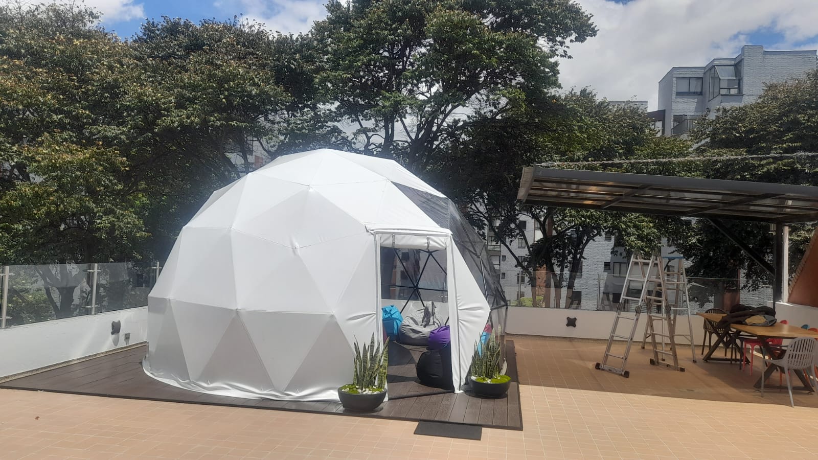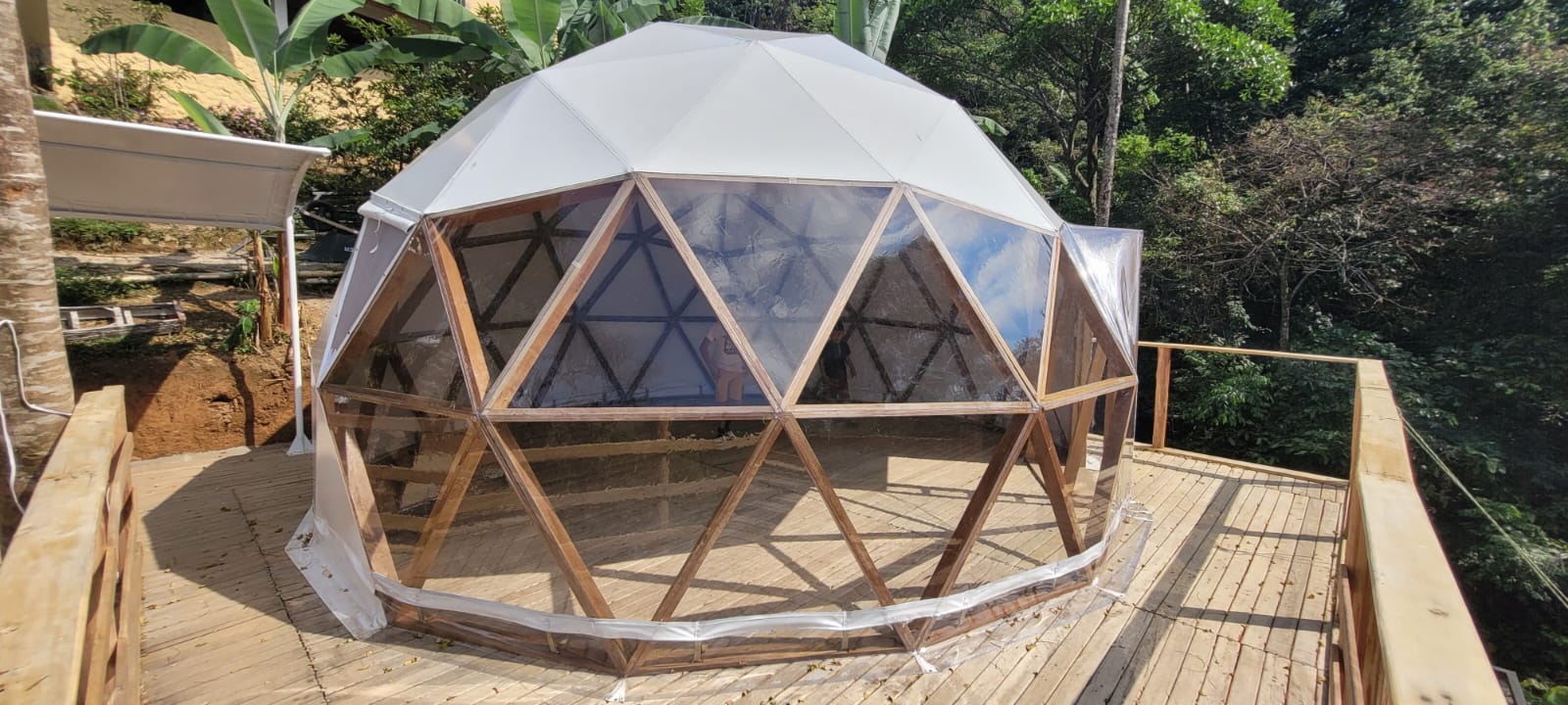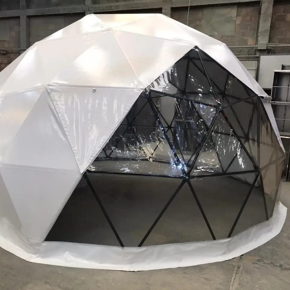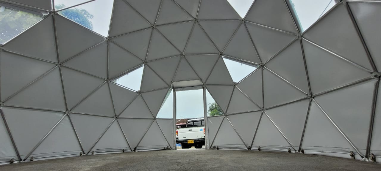 es una estructura en aluminio de facil armado y lona blak-aut lo cual permite a nuestros clientes ofrecer servicios de lujo en una combinación de la naturaleza y su tranquilidad.